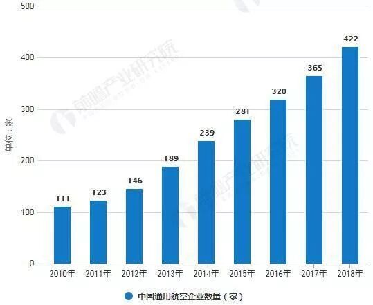 2010-2018年中国通用航空企业数量统计及增长情况